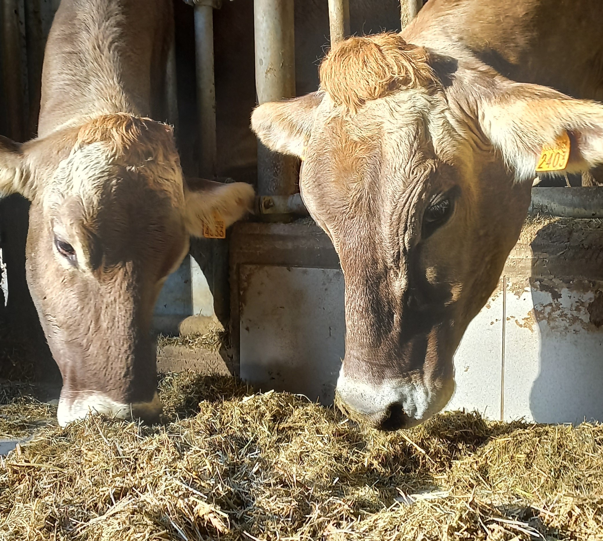 sono in stalla, l'alimentazione è composta dai foraggi fatti durante l'estate nel periodo di fienagione, con l'aggiunta di erba medica ed integratori. Gli animali da ottobre a marzo partoriscono e di conseguenza hanno bisogno di un'alimentazione più completa. L'erba medica ricca di proteine e fibre, addizionata ai nostri foraggi aumenta così la qualità del latte e il benessere dei nostri animali.