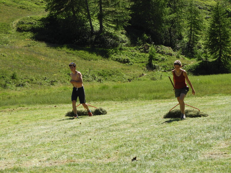 Grazie al lavoro degli agricoltori durante la fienagione i nostri animali godono di un'alimentazione sana e genuina e i numerosi pascoli vengono preservati e mantenuti integri.