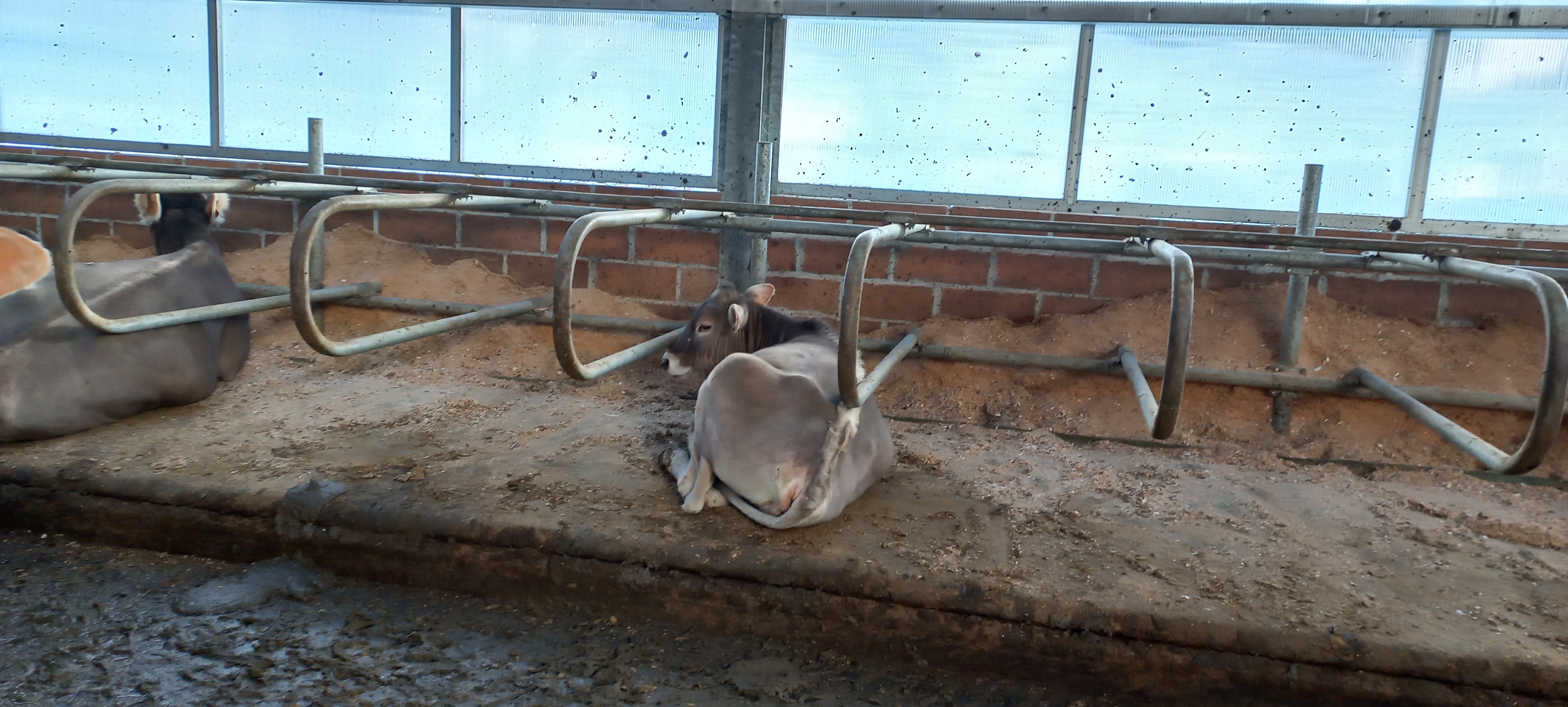 La stalla è composta da corsia di alimentazione, cuccette per il riposo degli animali, sala mungitura, vitellaia.